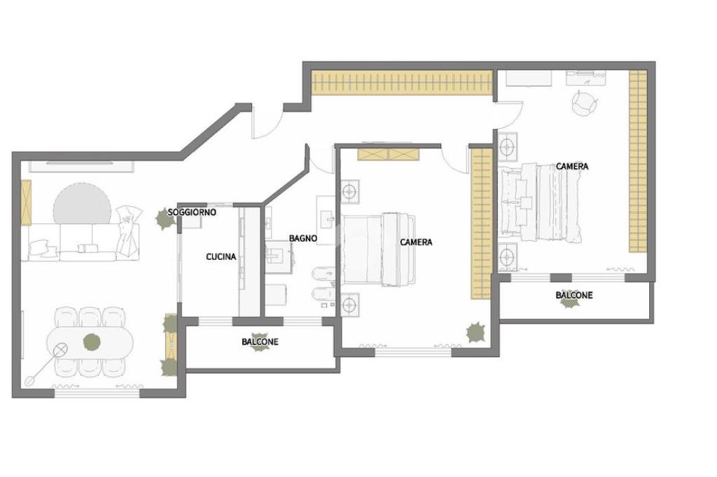 L'immobile è posto al secondo piano ed è composto da ampio ingresso, comodo soggiorno ben arredabile, cucina abitabile, due balconi, disimpegno della zona notte, due camere matrimoniali e bagno. L'appartamento presenta finiture originali con pavimentazioni in marmo. La posizione dell'immobile rappresenta il punto di forza di questo appartamento.